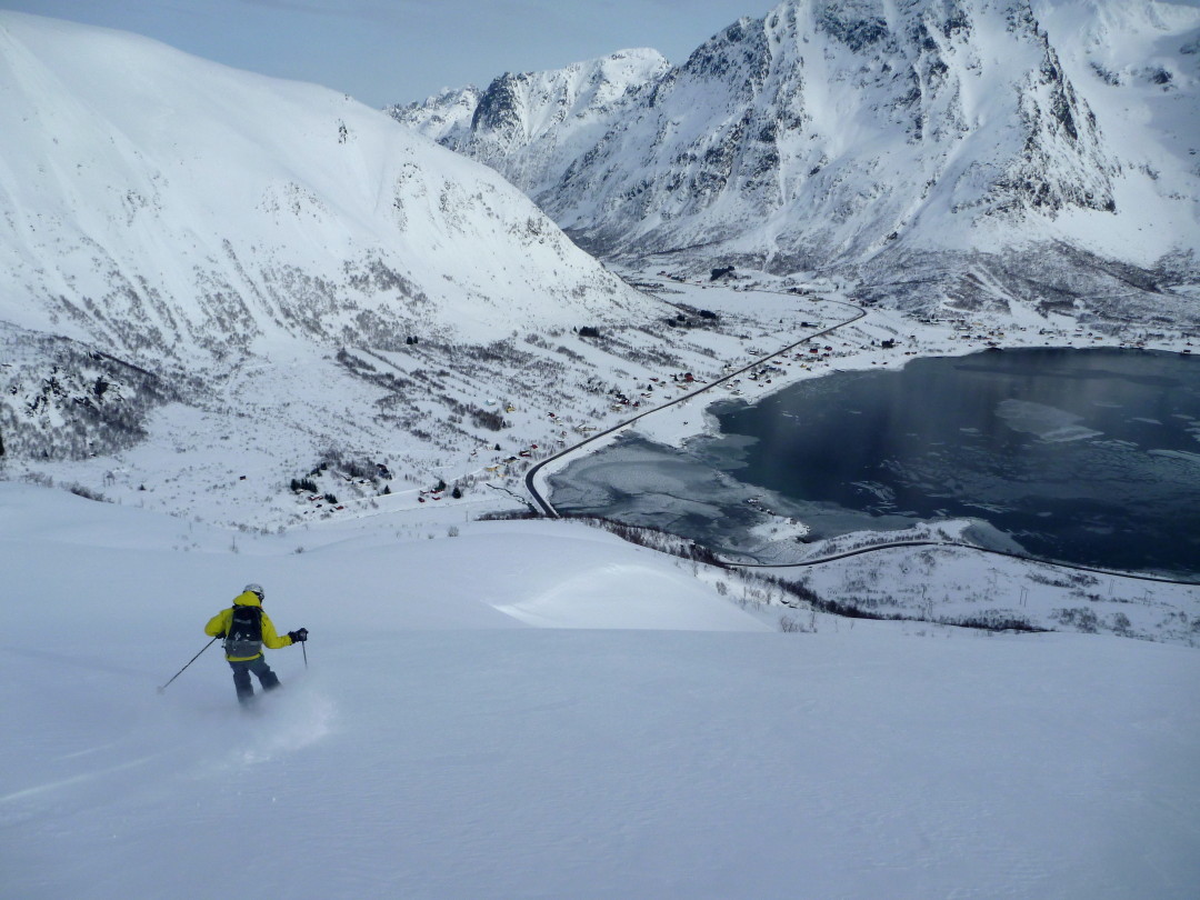Totalmente satisfechos volvimos al hotel en Kavelbag, un pequeño pueblo de pescadores, tranquilo pero con buen ambiente joven y muchas actividades culturales. En este lugar encontramos también algunas cabañas de pescadores que nos alquilarán a buen precio. Allí coincidimos con el “Lofoten Freeride” que se ha celebrado al comienzo de la primavera, en el que se dieron cita la mayoría de las figuras nacionales de esta disciplina. Unos días con gran ambiente de fiesta y esquí.